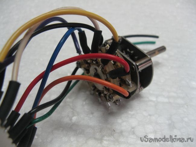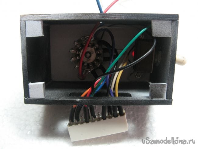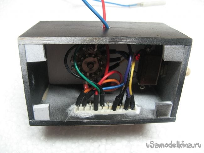 При сборке изменил положения проводов на галетном переключателе. Посчитал так более удобным. Подключаем проверяемый блок к нашему модулю. Переключая положения галетника, контролируем выходные напряжения или сопротивление.