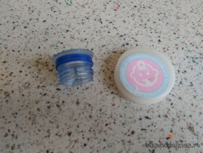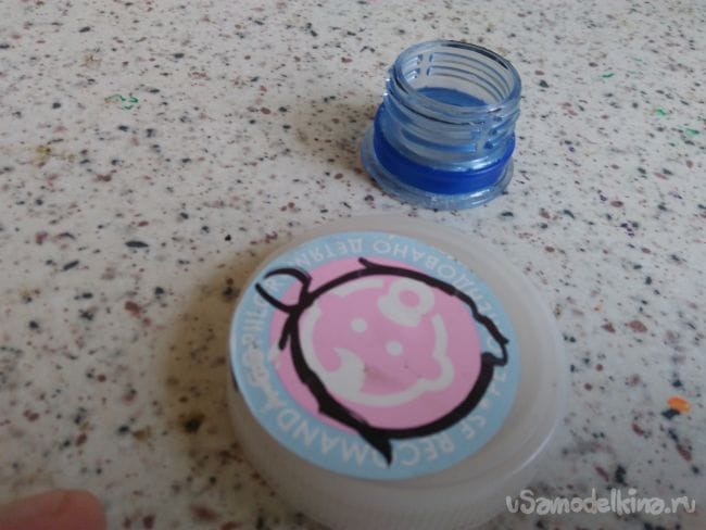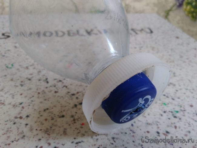 В крышечке маленькой бутылки делаем отверстие, неважно какого диаметра.