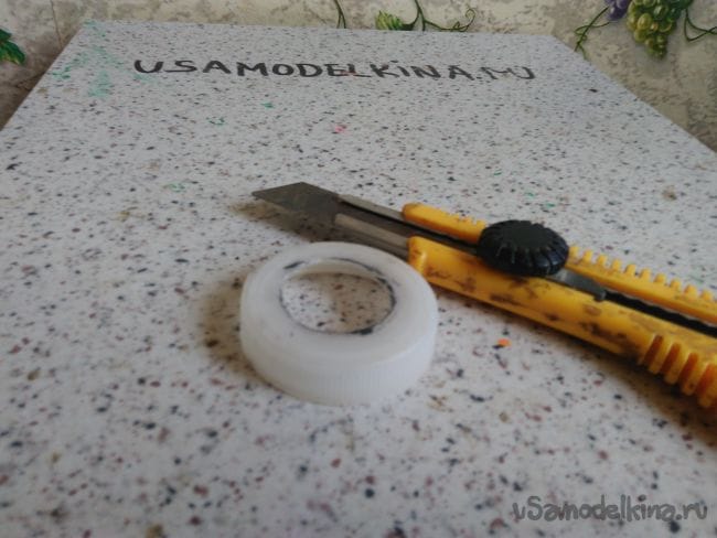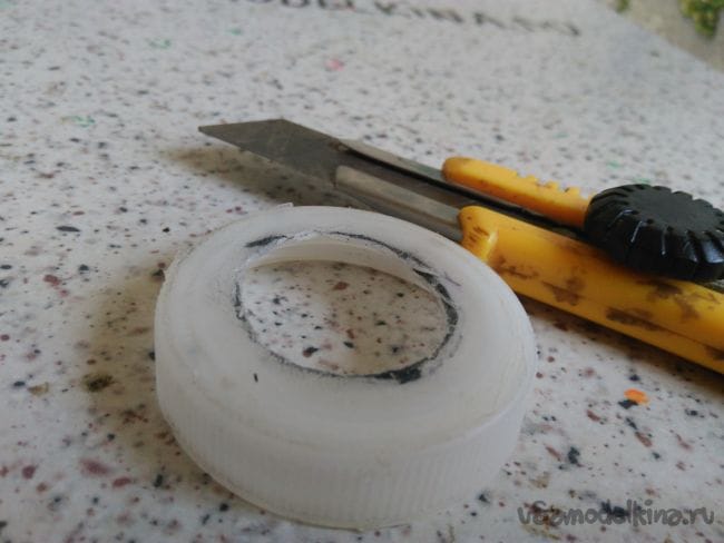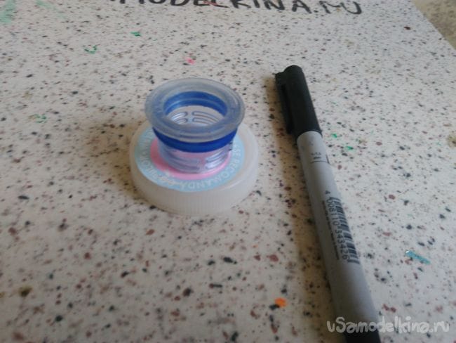И по нему по кругу маркером я отметил на большой крышке будущее отверстие.