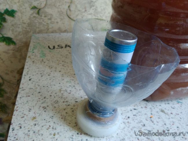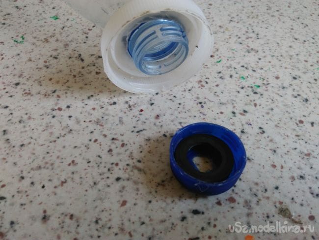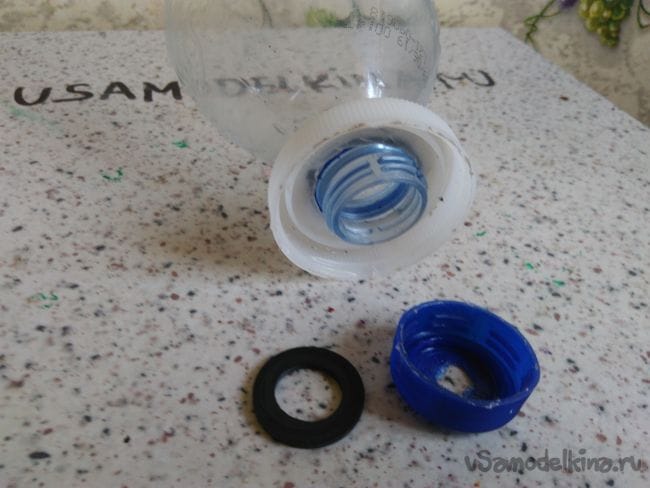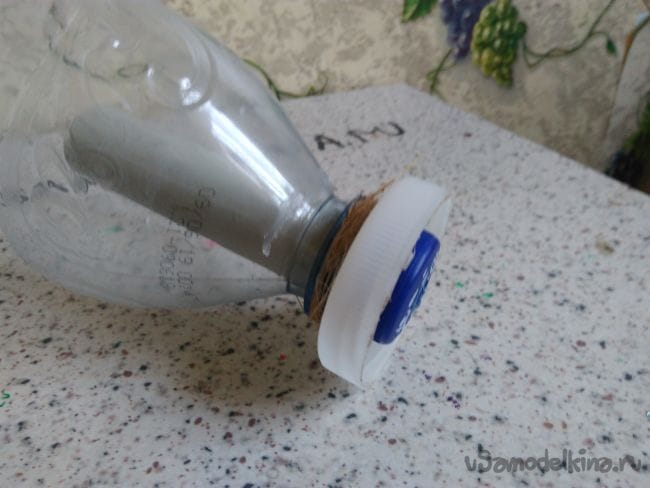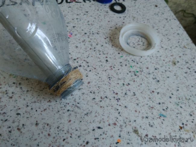 На горлышко обрезка бутылки наматываем немного сантехнического уплотнителя.