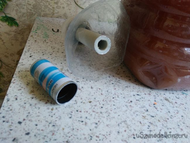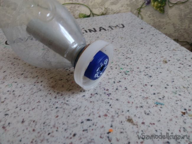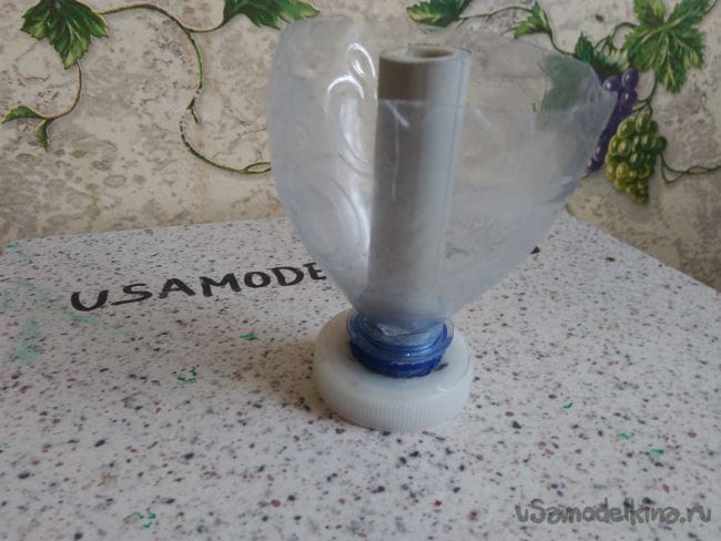 Теперь вставим ПВХ трубку в горлышко бутылки пока она не упрется в нижнюю крышку.