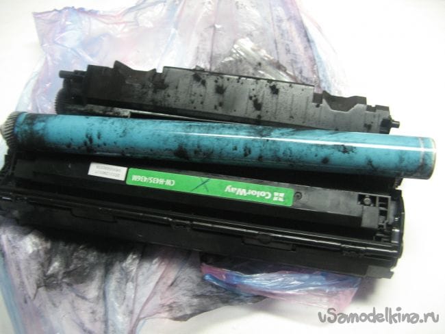 Из картриджа нам понадобится только фотобарабан. Остальное выкидываем. Разбирать нужно аккуратно, иначе все будет в тонере.