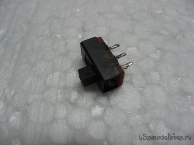 Выключать питание повышающего модуля буду микро тумблером. Снял его с детской игрушки.