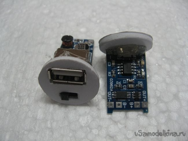 Повышающий модуль готовый с USB. Есть повышающие модули и без разъема, тогда нужен будет еще и разъем.