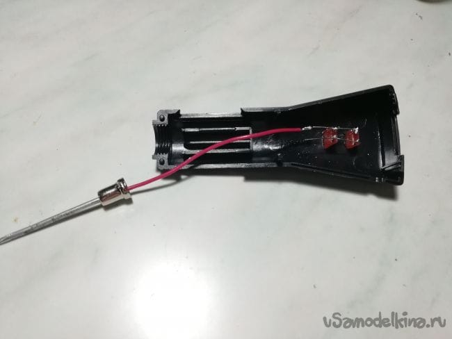 проделываем отверстия для светодиодов в корпусе желательно использовать светодиоды разных цветов но у меня только красны я буду использовать их.