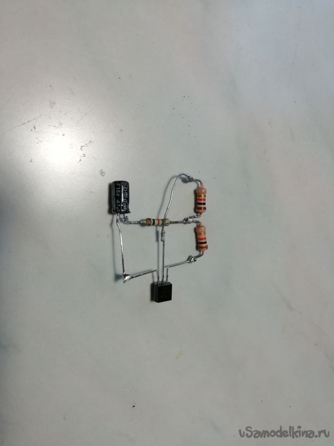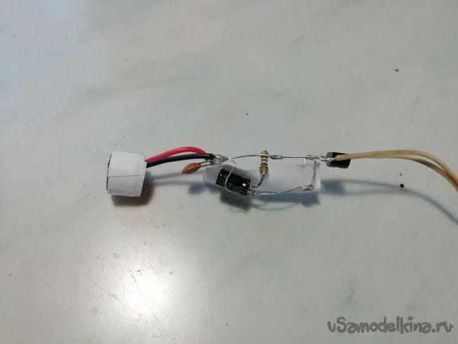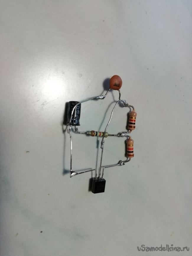 Я сложил схему пополам изолировав посередине изалентой, но можно спаять ещё компактнее.