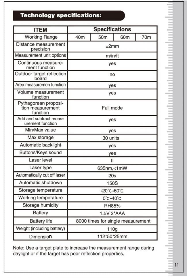 - диапазон измерения от 0,05 до 100 м/80 м/60 м/40 м;