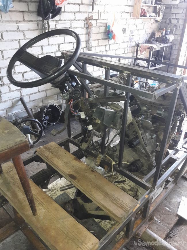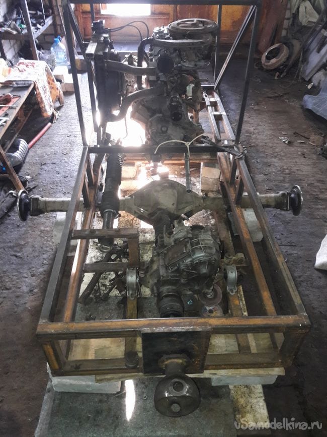 Вездеход переломка DenisYr.1234554321 30-08-2018, 14:38 Двс и кпп ока, ркпп ваз 2121, рулевая рейка и колонка азлк 2141, мосты газ 3110, радиатор и сиденье ваз 2115, поворотный кулак уаз, кулиса переключения передач и троса тойота айвенсис. Рамы профильная труба 40×40*3 40×20*2