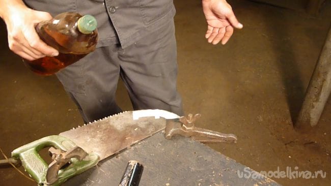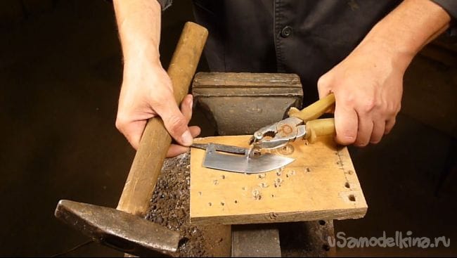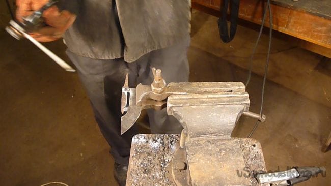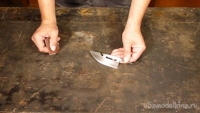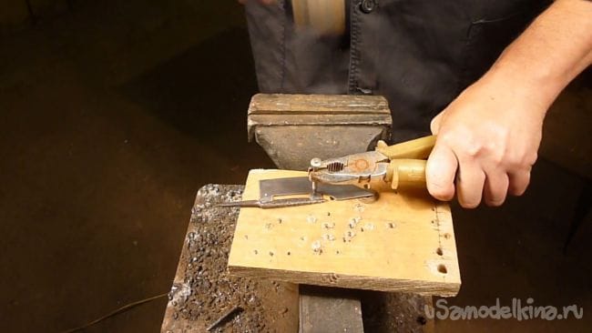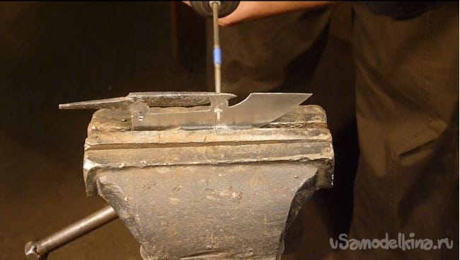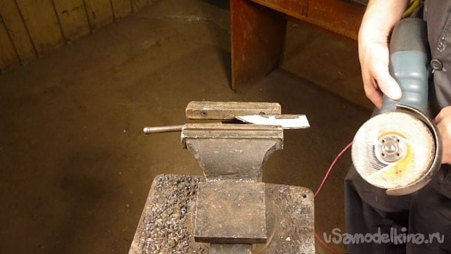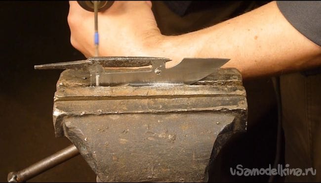 Найденную железку очистили от ржавчины наждачной бумагой и приварили к ней лезвие.