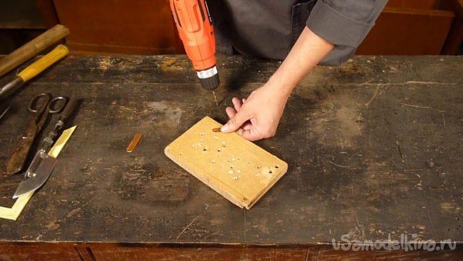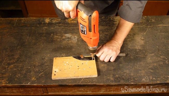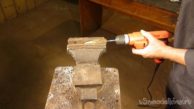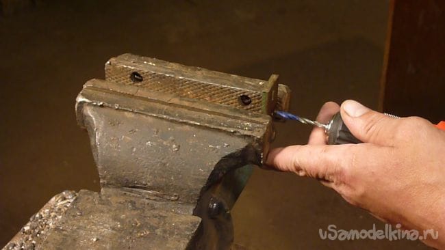 Отверстия выровняли и подогнали под необходимый размер при помощи круглого надфиля зажатого в дрель.