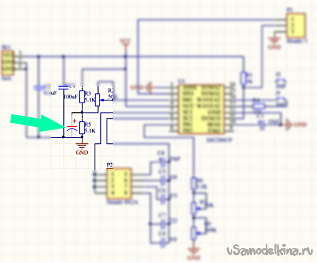 Производитель рекомендует зашунтировать правый по схеме резистор делителя напряжения электролитическим конденсатором. У нас этого нет. Вернее, не было.