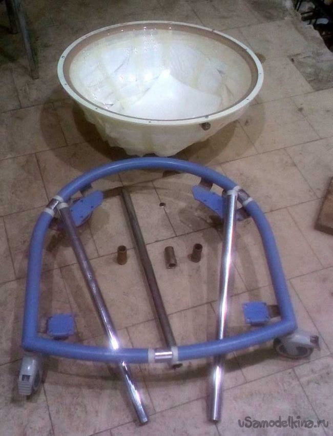 В своих тайных запасах нарыл подставку с колесами и три трубы.