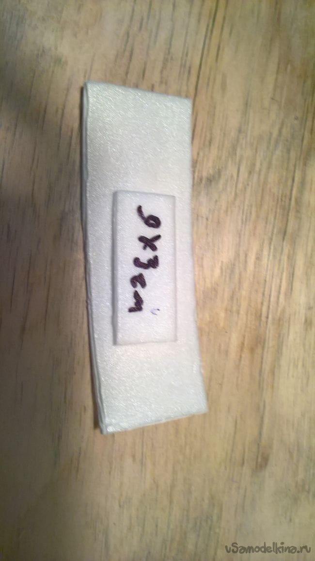 Теперь вырезаем кусочек потолочной плитки (можно картона) 9х3см