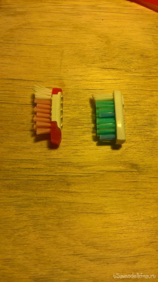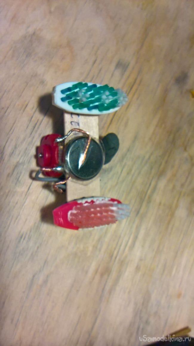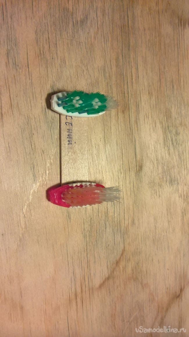 После мы клеем термо пистолетом щетки к палочке от мороженого.