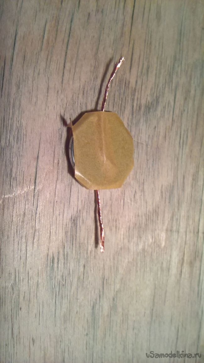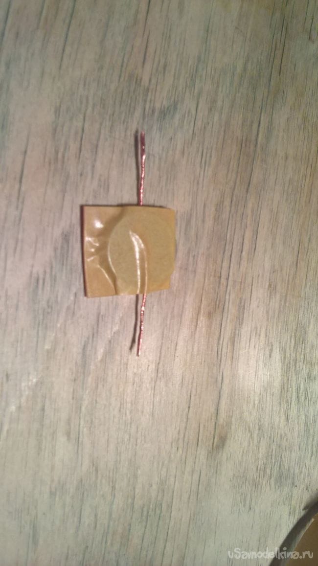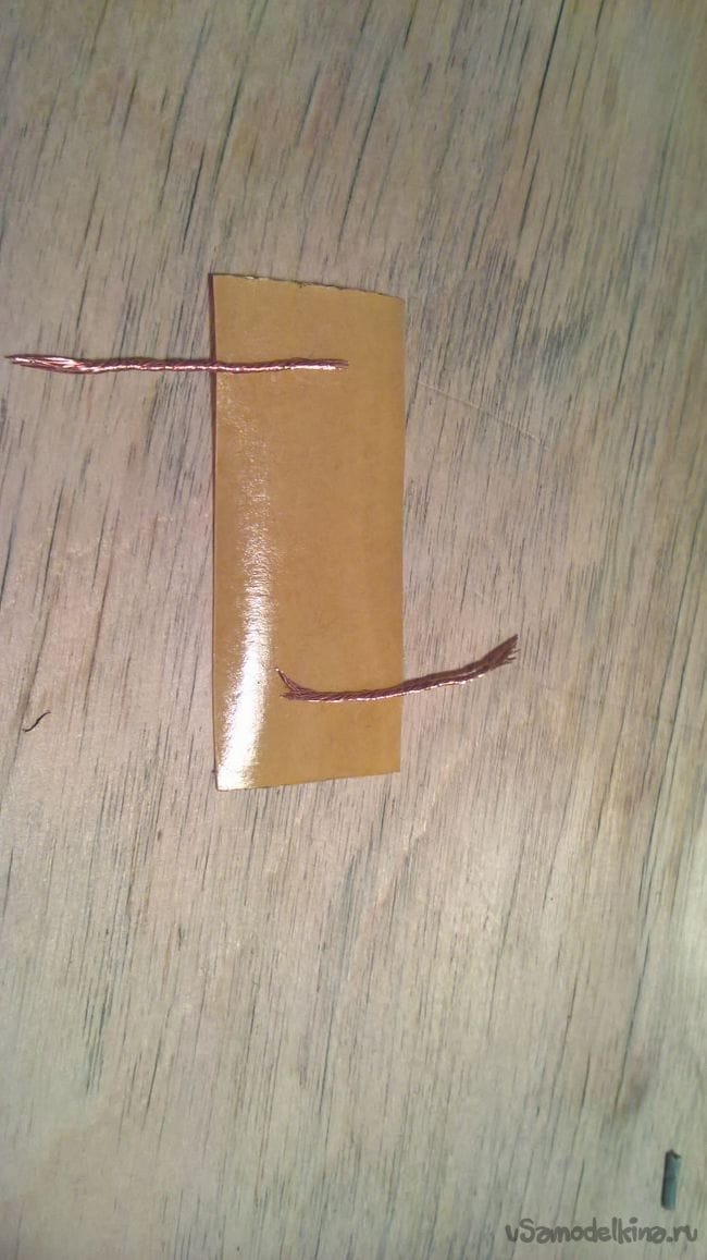 теперь берем полоску духстороннего скотча и клеем туда эти провода