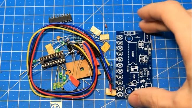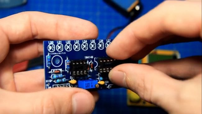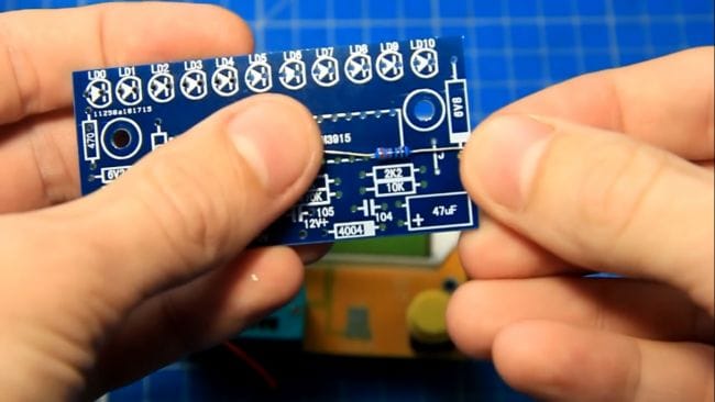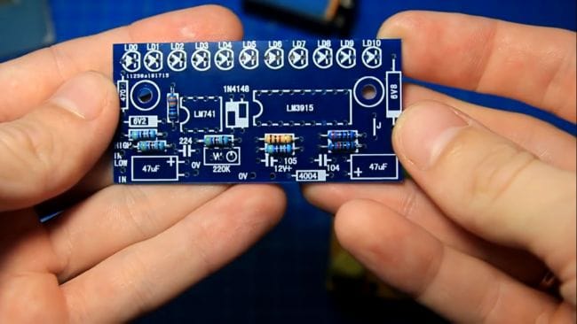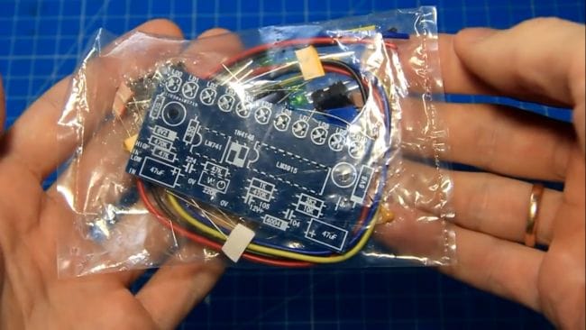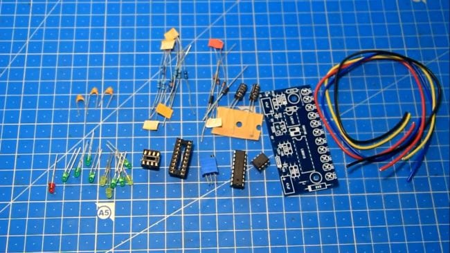 Чаще всего это прыгающие светящиеся столбики или двигающиеся стрелки. Стрелочные индикаторы стоят дорого, потому пока будем собирать более дешевую светодиодную версию. Набор идет в запаянном пакете, аккуратно разрезаем и достаем содержимое пакета.