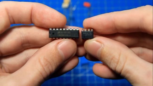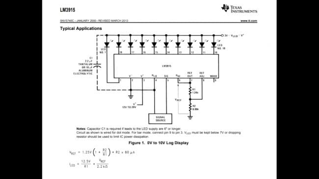 Одна - это операционный усилитель UA741 и микросхема драйвера LM3915 с логарифмической шкалой на 10 выходов, диапазон 30 дБ по 3 дБ на шаг. Это популярная микросхема, информация по ней есть в интернете.