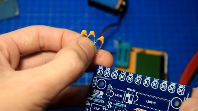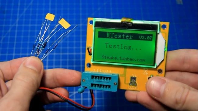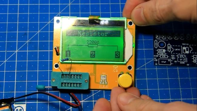Ну а теперь можно приступить к сборке. В первую очередь будем устанавливать постоянные резисторы. Чтобы узнать номинал детали автор использует вот такой тестер радиодеталей.