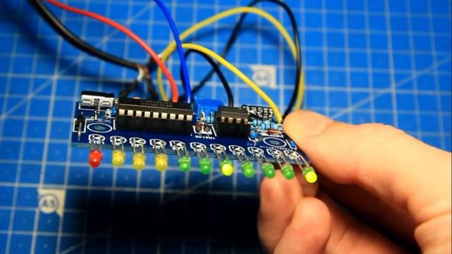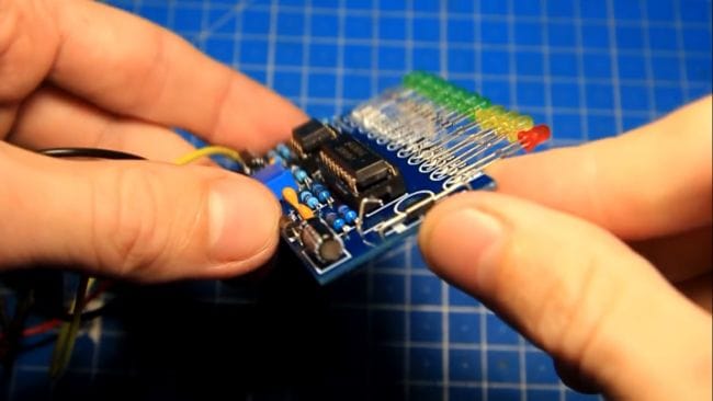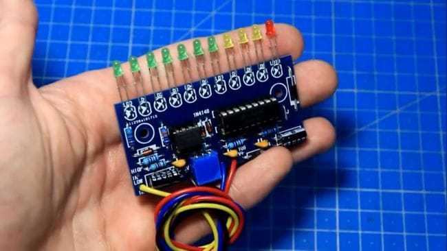 Это светодиодный индикатор уровня звукового сигнала. Предназначен он для визуального контроля уровня звукового сигнала, что облегчает контроль устройства, например, чтобы сигнал на входе или выходе усилителя звука или микрофонного усилителя не превышал определенного уровня. Это очень удобно делать с помощью индикатора уровня сигнала. Еще это визуально выглядит красиво. Такие индикаторы можно часто увидеть на заводских устройствах.