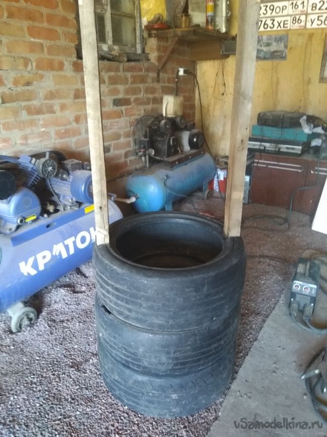Для начала возьмём три покрышки подходящего размера и хорошенько их помоем.