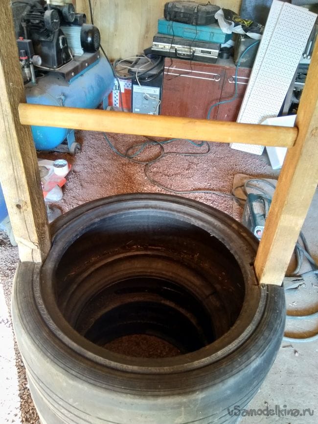 Потом саморезами закрепила брус к покрышке.