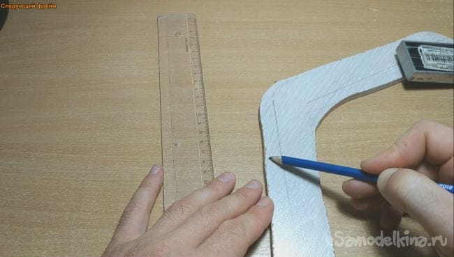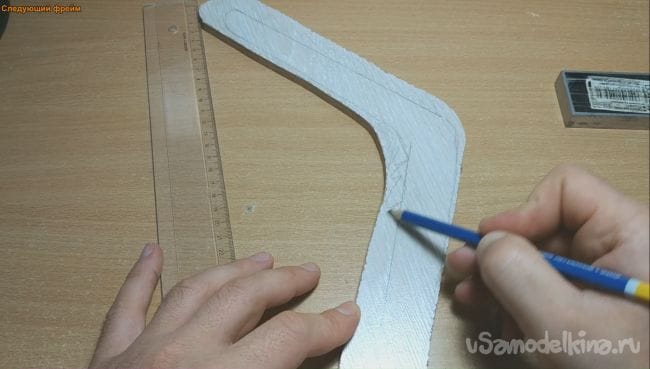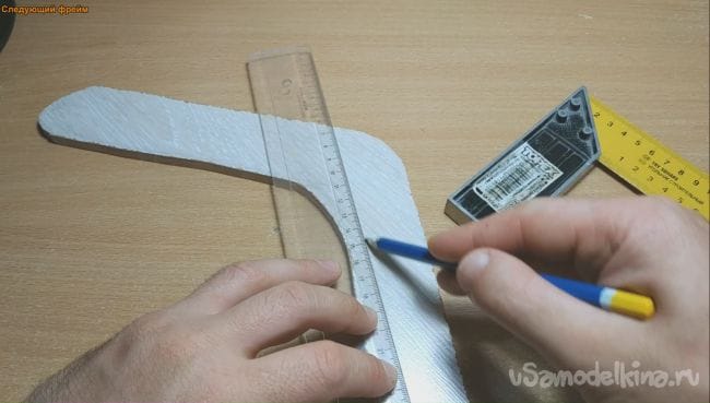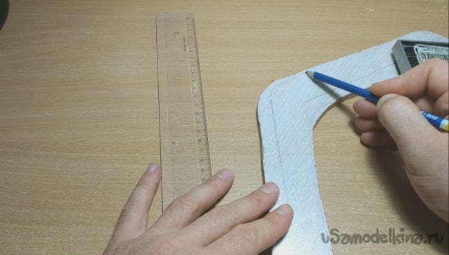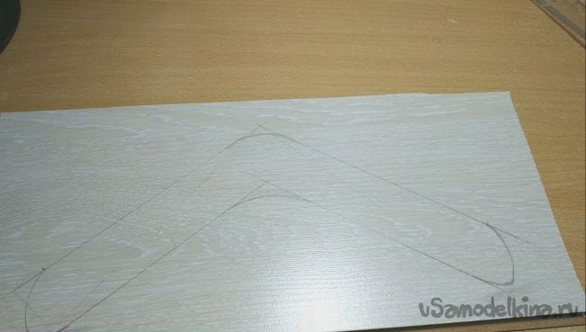 Шаг первый. Для начала нужно определиться с будущей формой бумеранга и начертить его профиль на ламинат.