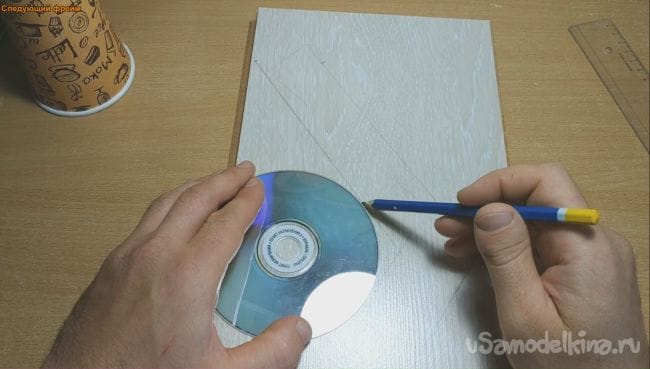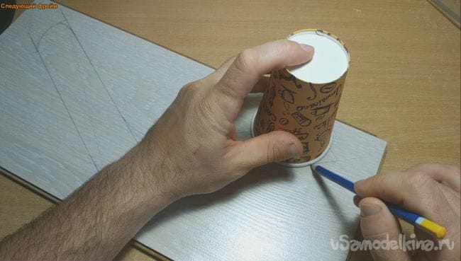 Внутренний угол бумеранга нужно сделать более закругленным, поэтому я воспользовался CD диском.