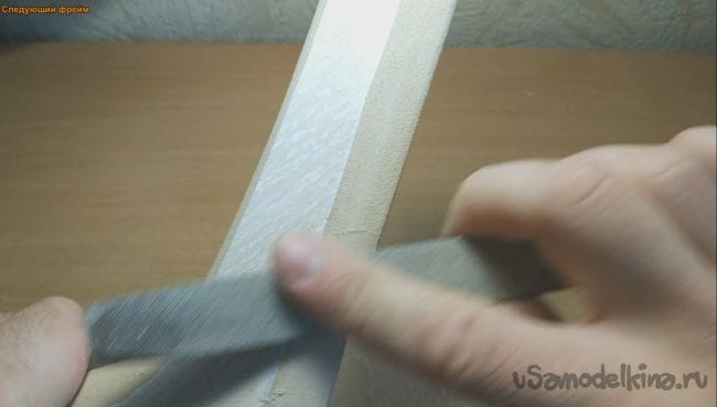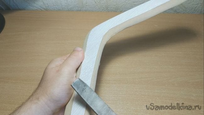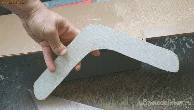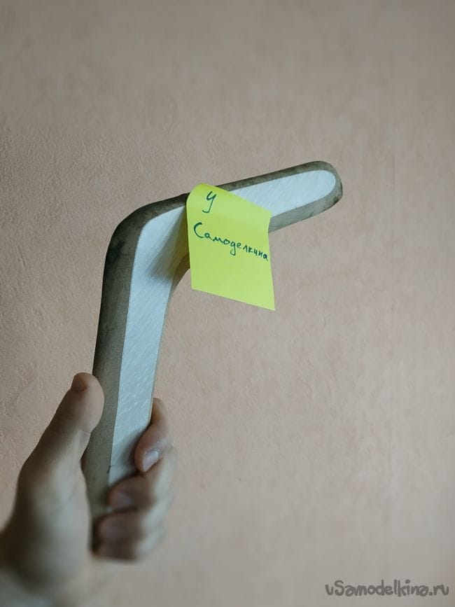 Дома был найден остаток полоски ламинированного пола и было принято решение сделать бумеранг.