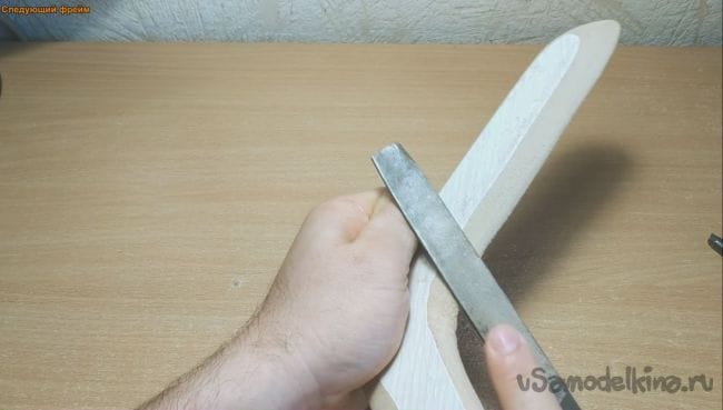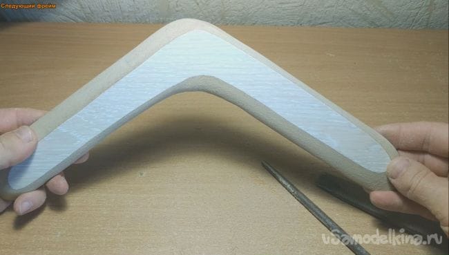 Теперь нужно сточить лопасти бумеранга так чтоб они получились в виде крыла.