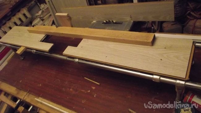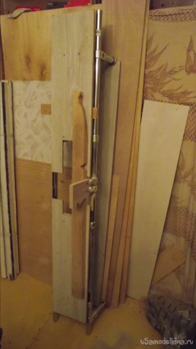 Из материалов, которые можно купить во многих строительных магазинах, а именно труба 20 диаметра, нескольких креплений джокер системы а так же доски напольного ламината и конечно же самого электрического рубанка.
