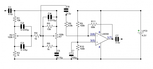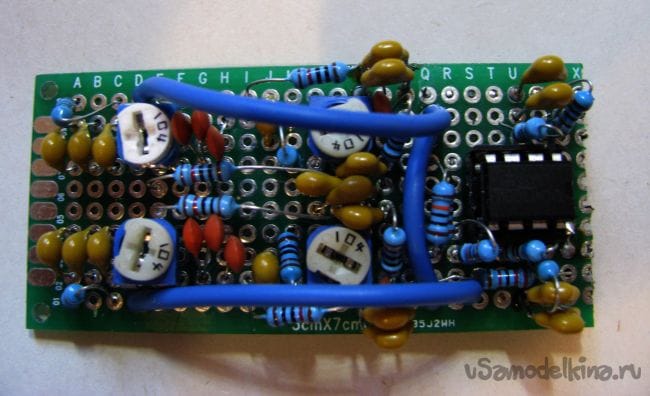 .Тембр я выставлял на слух. Вначале я настраивал низкие, выкрутил оба резистора на максимум, я убрал усиление высших частот. Так же, но зеркально, я поступил с каналом высших.