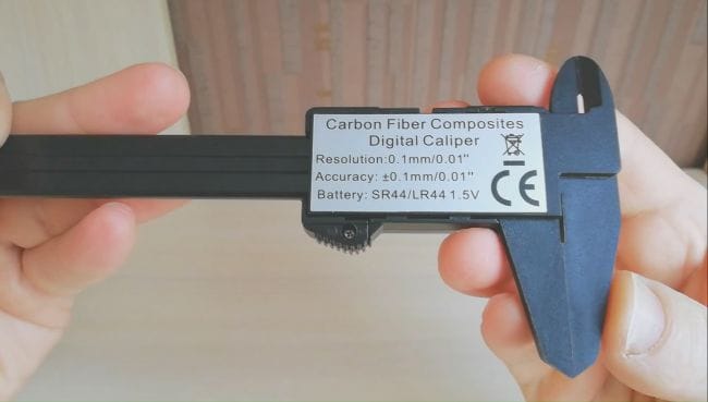 Эта модель штангенциркуля выполнена из композитов углеродного волокна, по крайней мере так указал производитель на обратной стороне прибора. Правда это или нет сказать я не могу, так как не знаю как это проверить.