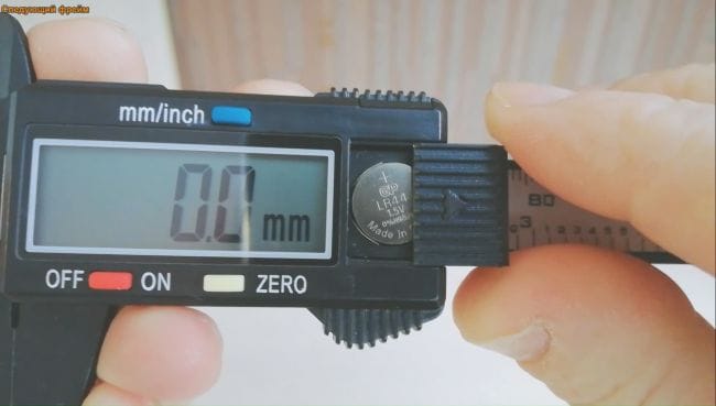 Работает прибор на одной батарейке LR44. Хватает батарейки очень на долго так как штангенциркуль умеет выключатся автоматически если вы забыли нажать на кнопку выключения.