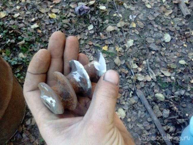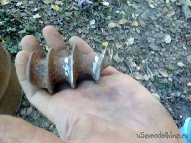 Сделал такой наконечник из винта мясорубки. Работает - ПРЕВОСХОДНО! 5+ Заворачивается в землю очень легко, давить сверху не нужно, идет сам, сколько будете крутить. Чтобы вытащить, нужно сделать оборот или полоборота назад. Как делается, смотрите на фото.