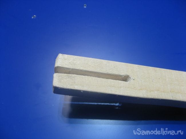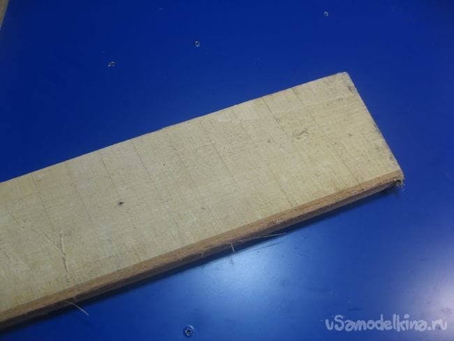 Из доски от поддона нужно вырезать рейку. К рейке будут крепиться отражатели со светодиодными лентами. В рейке нужно сделать пропил. В конце пропила сверлю отверстие, получилось что-то типа цанги.