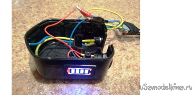 Можно установить эту плату в штатное зарядное устройство шуруповерта. Для контроля степени заряда аккумуляторов можно установить в аккумуляторный отсек минивольтметр или индикатор заряда. Чтобы не было лишнего потребления тока с его стороны, можно включить через выключатель или кнопку. Индикатор заряда выпускается в исполнении 3s/4s/5s.