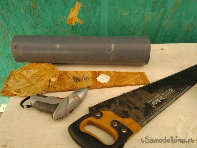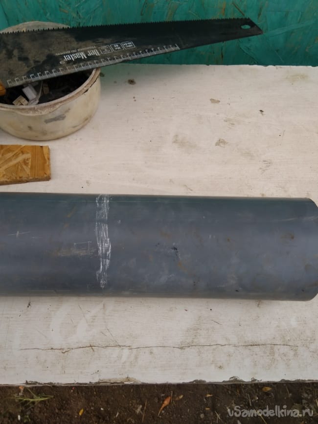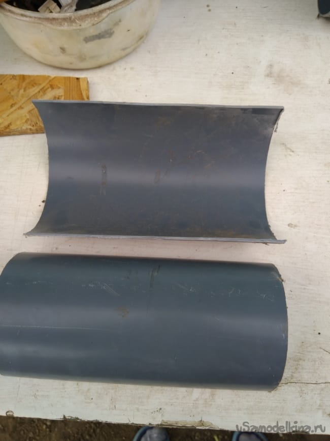 Итак, берем пластиковую трубу отмеряла от нее нужную нам часть и отпиливания ее и тут же распиливаем ее вдоль чтобы получилось 2 отдельные части.