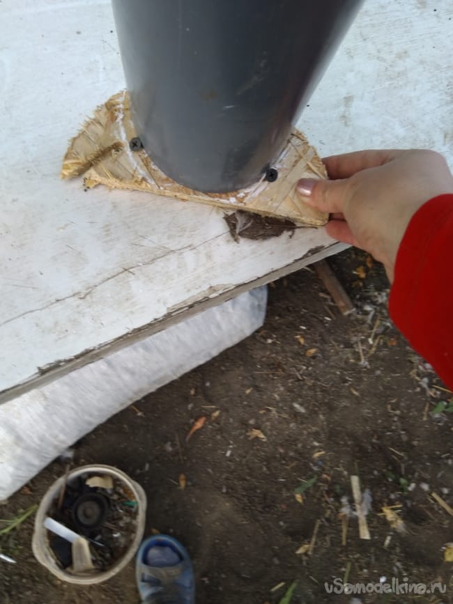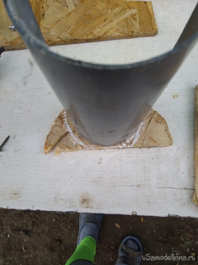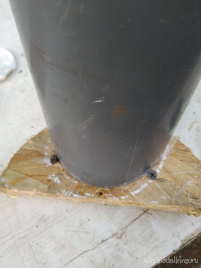Затем прикладываем обрезанную заготовку из пластиковой трубы к заготовке и мелом намечаем место фиксации.