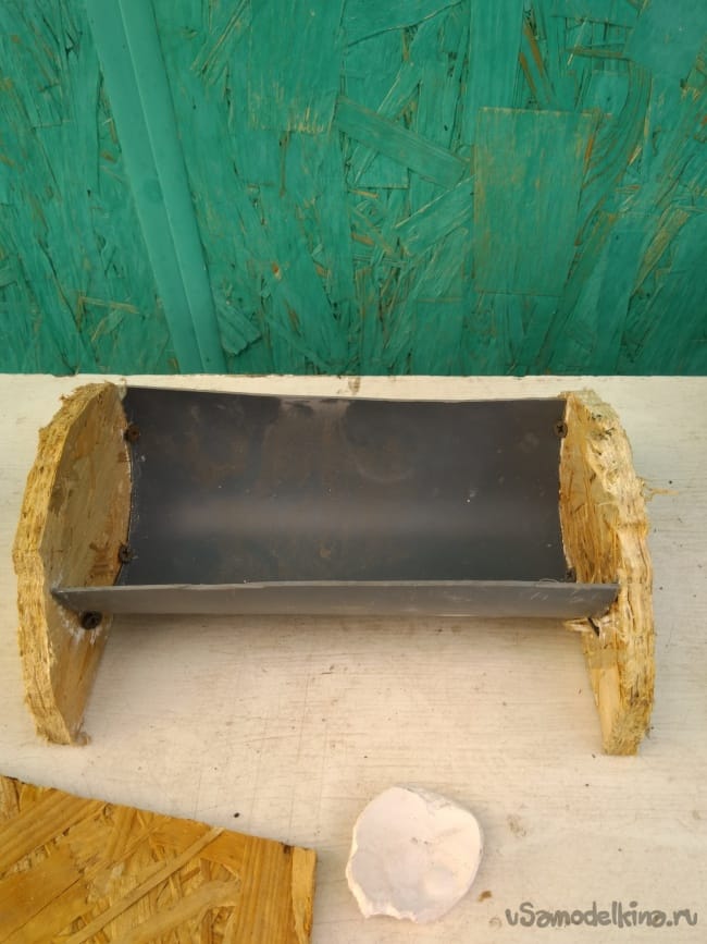 И также нужно сделать два отверстия в готовой кормушке, их я сделала с помощью шуруповерта и саморезами и также продеваем проволоку.