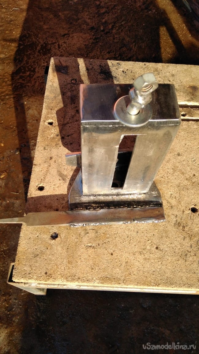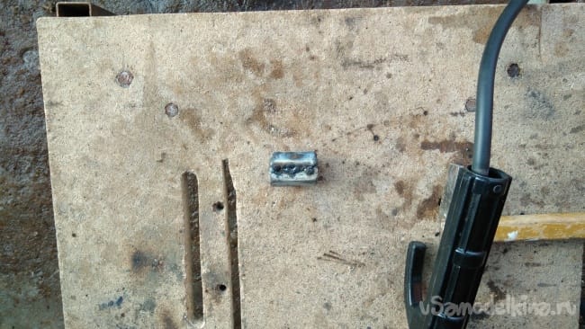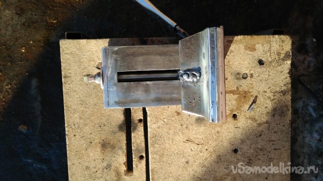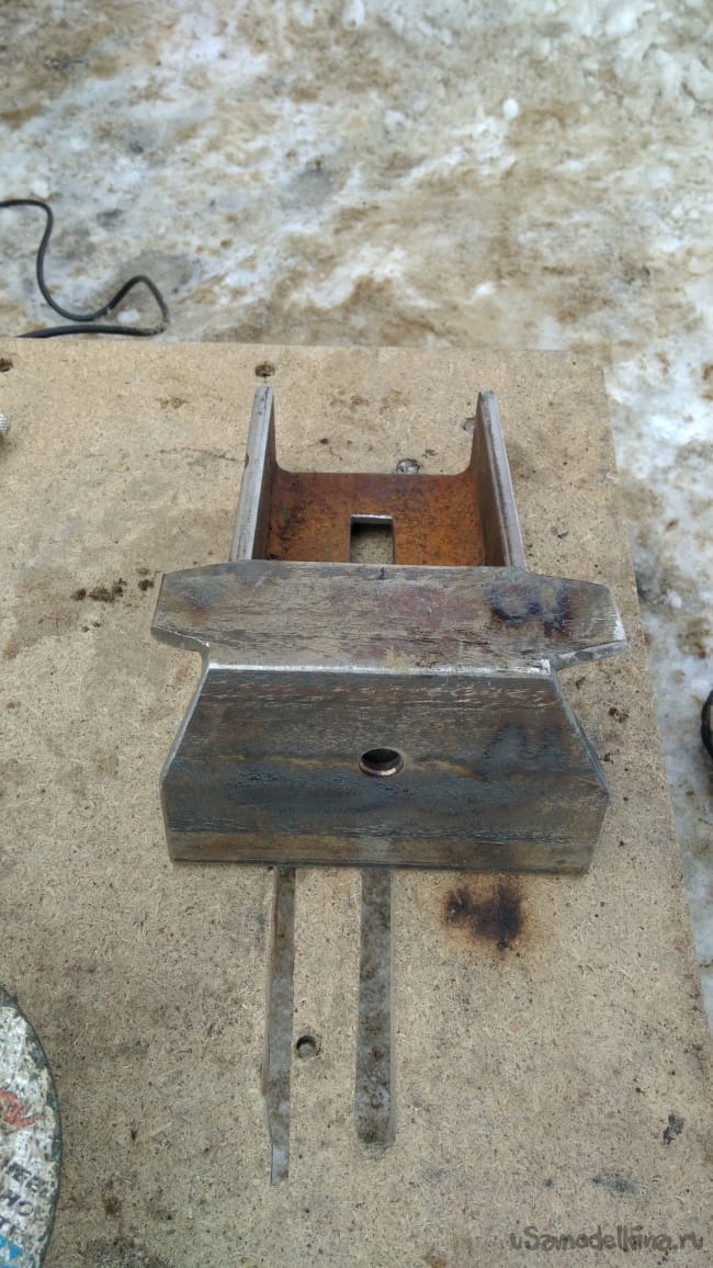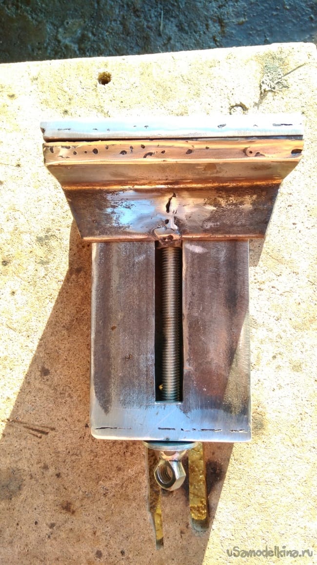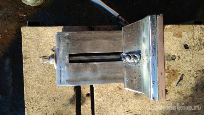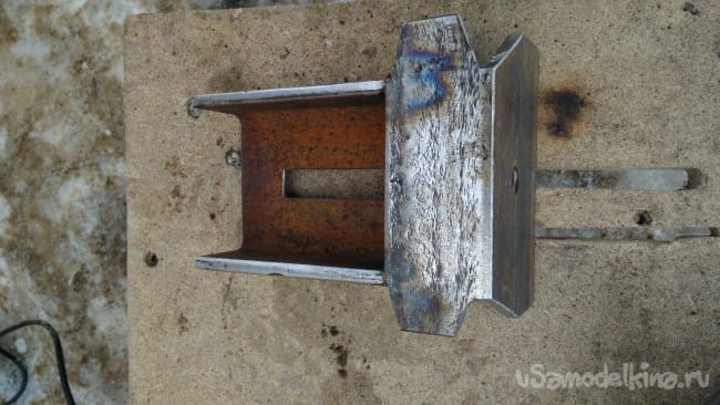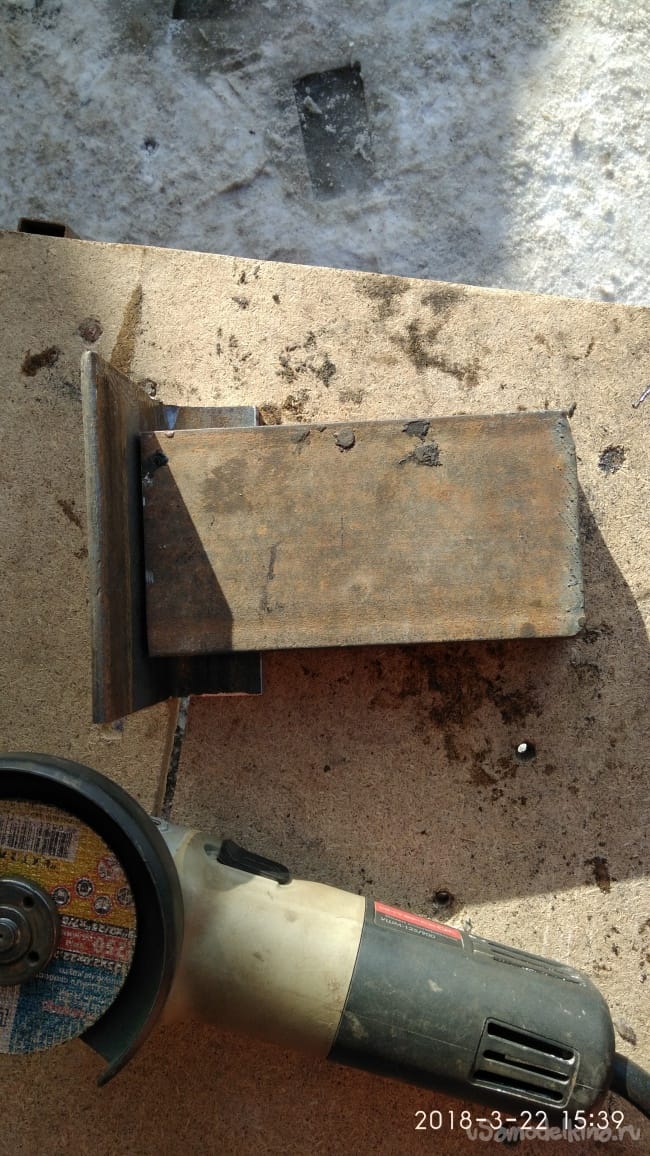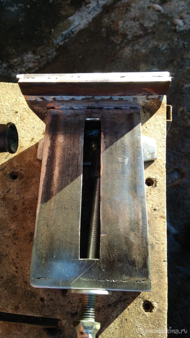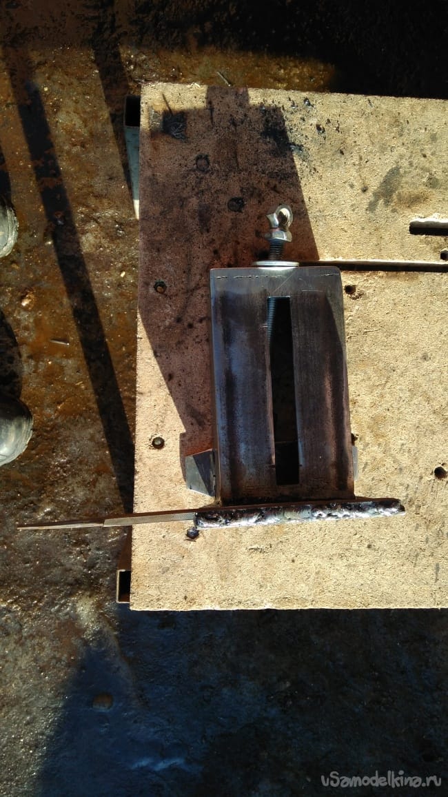 И привариваю уголок к удлинённой гайке с приваренной полоской.