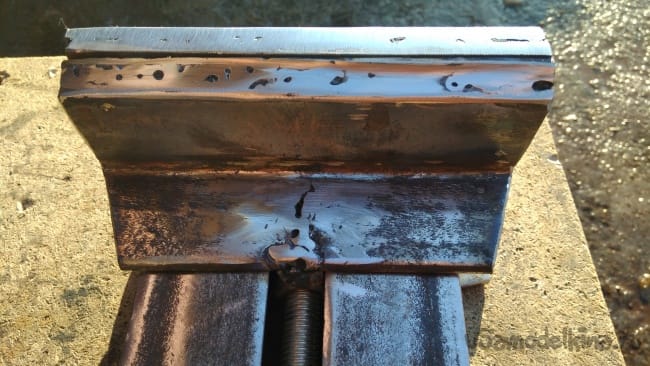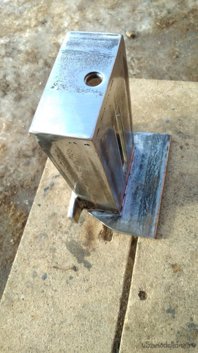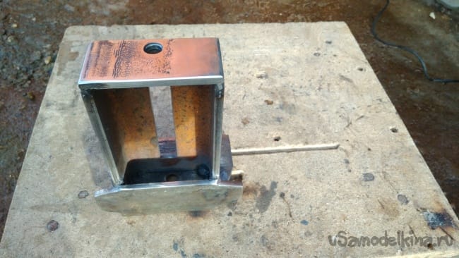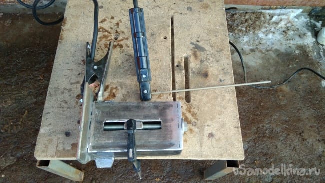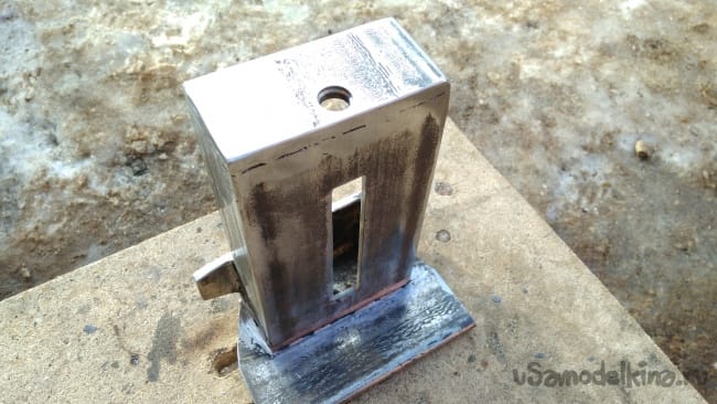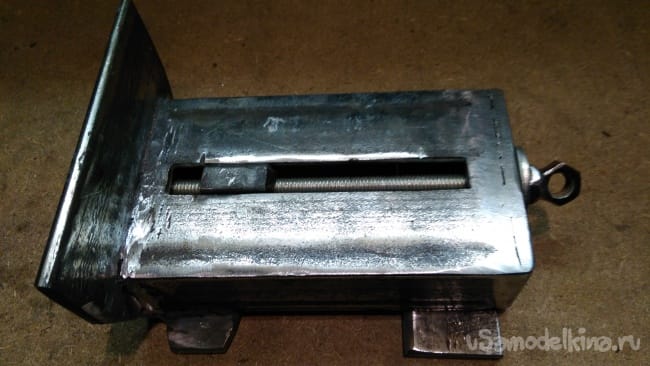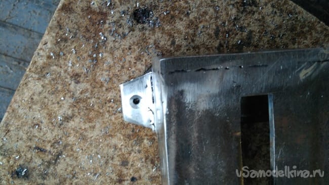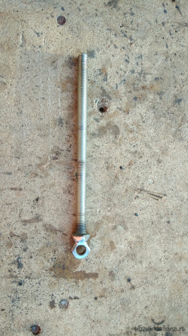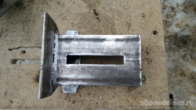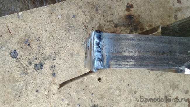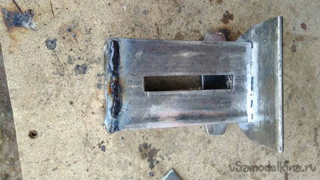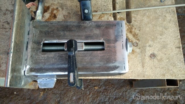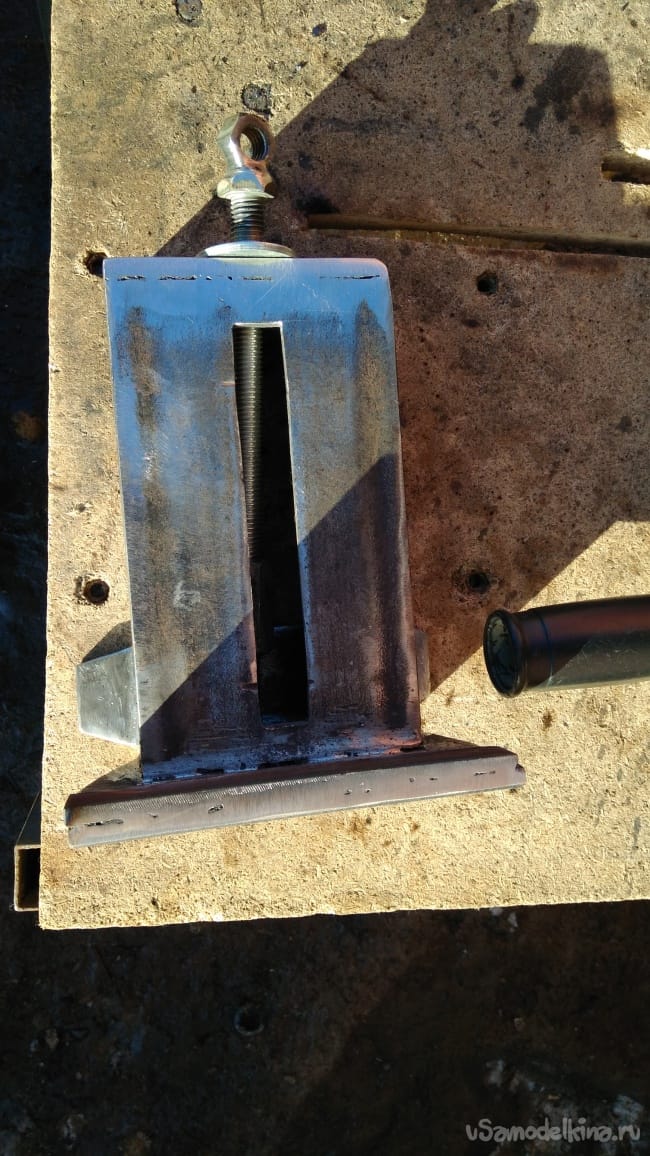 И привариваю уголок к удлинённой гайке с приваренной полоской.
