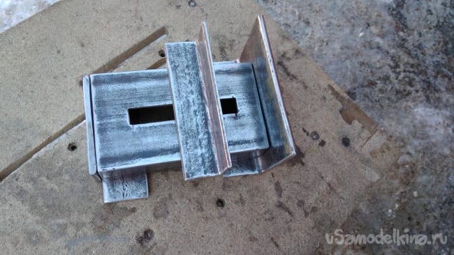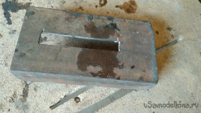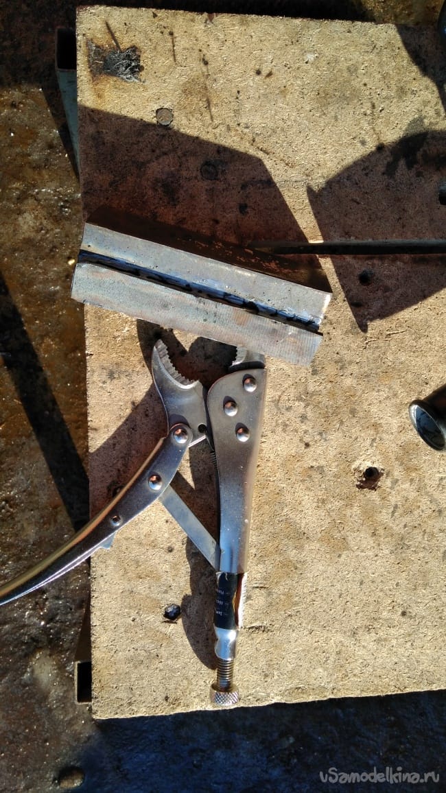Отрезаю полоску металла в размер паза сделанного в швеллере.