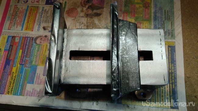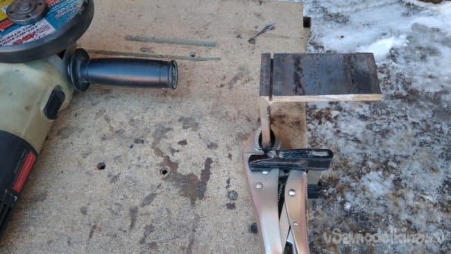 Далее в швеллере по центру вырезаю «болгаркой» паз.