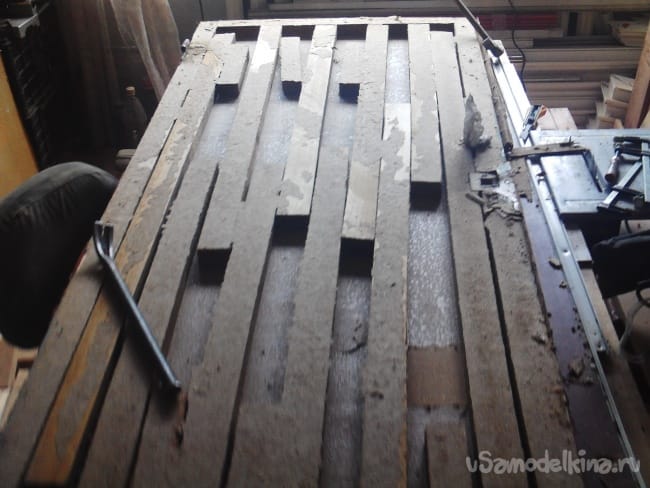 Если разобрать то, вот так устроена старая дверь, часть брусков пойдет в дело, конкретно тот к которому