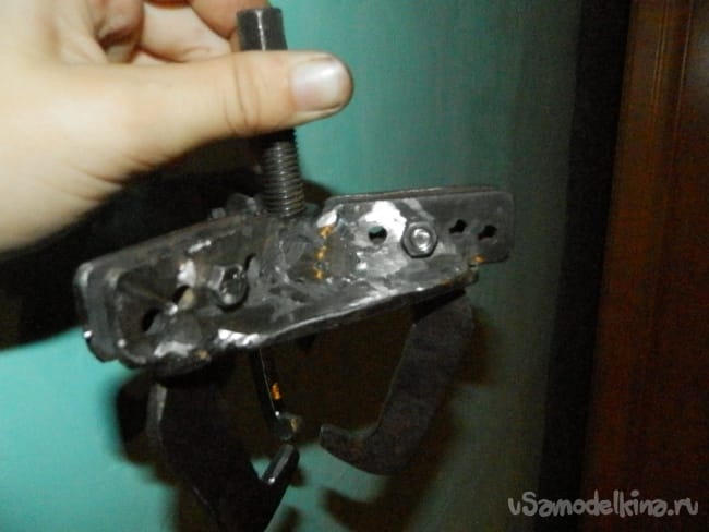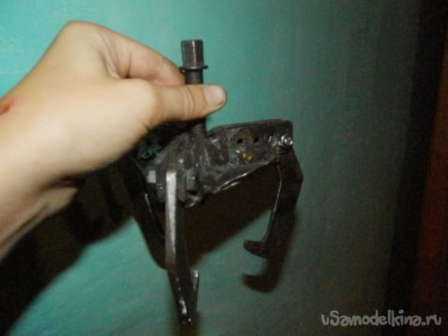 Шаг 6 Собираем нашу конструкцию смазываем гайки ставим на место лапки и вкручиваем болт. Вот и все наша самоделка готова ей можно снимать подшипники различных размеров заменив лапки можно снимать обойму подшипника если она осталась внутри. Лично мы сняли этим съемником генератор мопеда, ничем снять не могли, но при помощи этого съемника с большим усилием, но сняли. Кстати мы для него его и делали так как в магазинах ничего подобного не нашли в продаже.