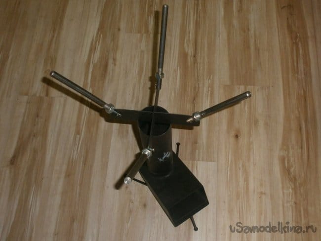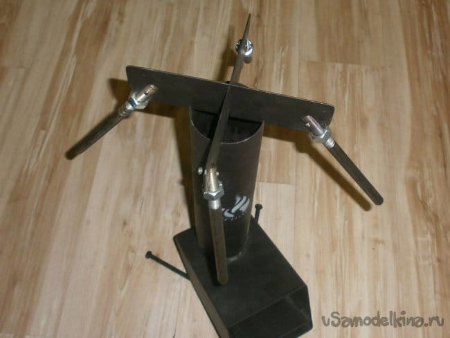 Модернизированный рассекатель готов. Гайки на нём будут отвечать за жёсткую фиксацию угла наклона. Поэтому когда первый раз едете на природу, или берёте другой казанок, не забудьте ключ на 19.