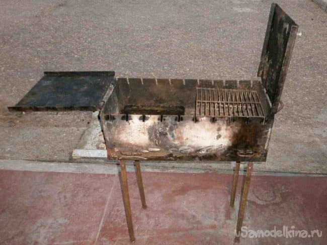 В своё время мне сварили полноценный мангал. Из толстой стали, чтобы не прогорел, на длинных ножках, чтобы готовить в полный рост, с «крыльями-половинками» крышки, выполняющими роль стола. Всем он хорош, но вес и габариты, это нечто.