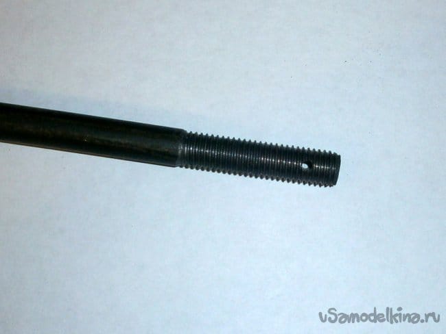 Накрутив гайку (она потом снимет заусенцы), отступив 10 мм от края, просверлил отверстие сверлом 4 мм.