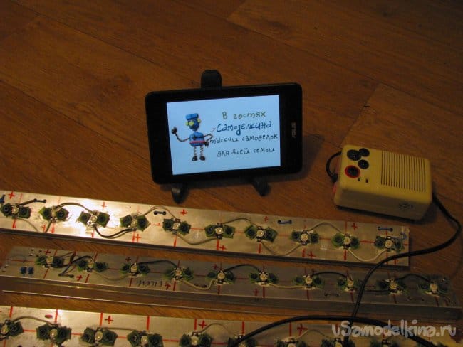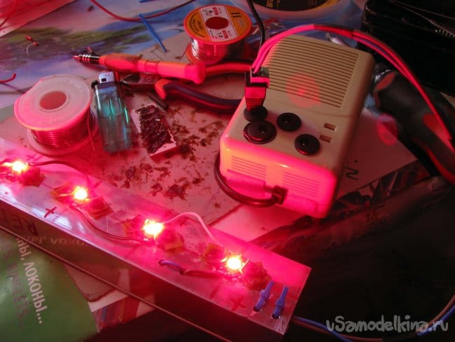Общий вид одной светодиодной панели получился вот таким: обратите внимание, что полярность любого светодиода оппозитная к соседнему.