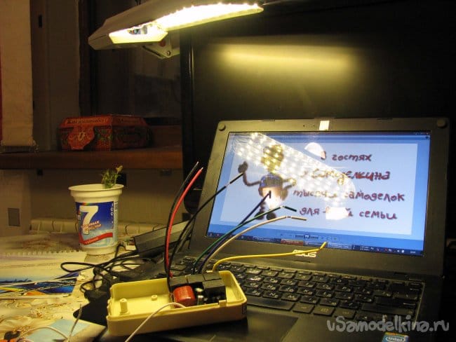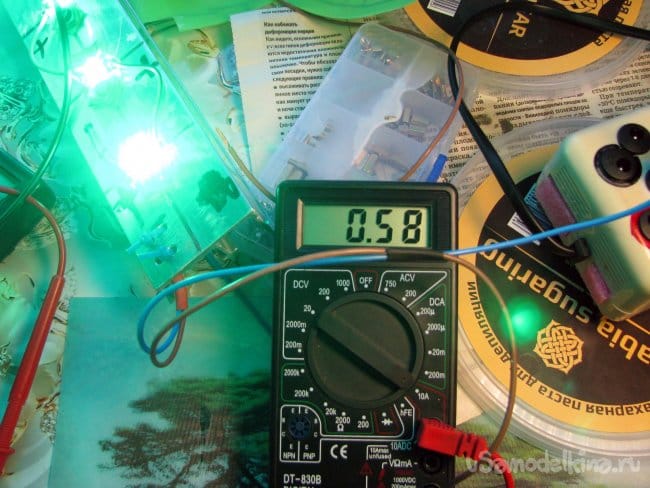 Общий ток после десяти минут работы, колебался около 600 мА – что порадовало – диоды таки трехваттные. А температурный порог не превысил болевой – держать в руке радиатор еще было можно.